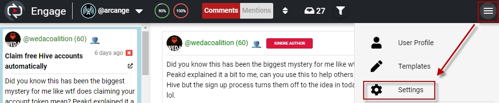 The first settings allow you to define which front-end Engage will use when you click on a link in the application (avatars, ling to post or comment, your profile)