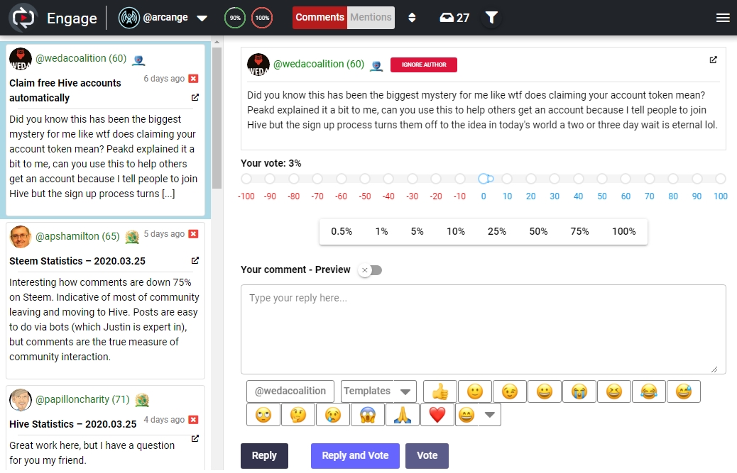Once signed in, you will be able to use all Engage’s features. Engage will load your unanswered comments and display them in an “inbox” style window.