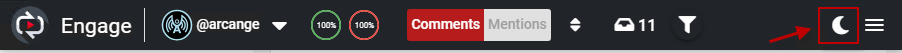 modesEngage supports displaying its interface in dark and light mode. To toggle between modes, use the related icon on the right of the application toolbar.